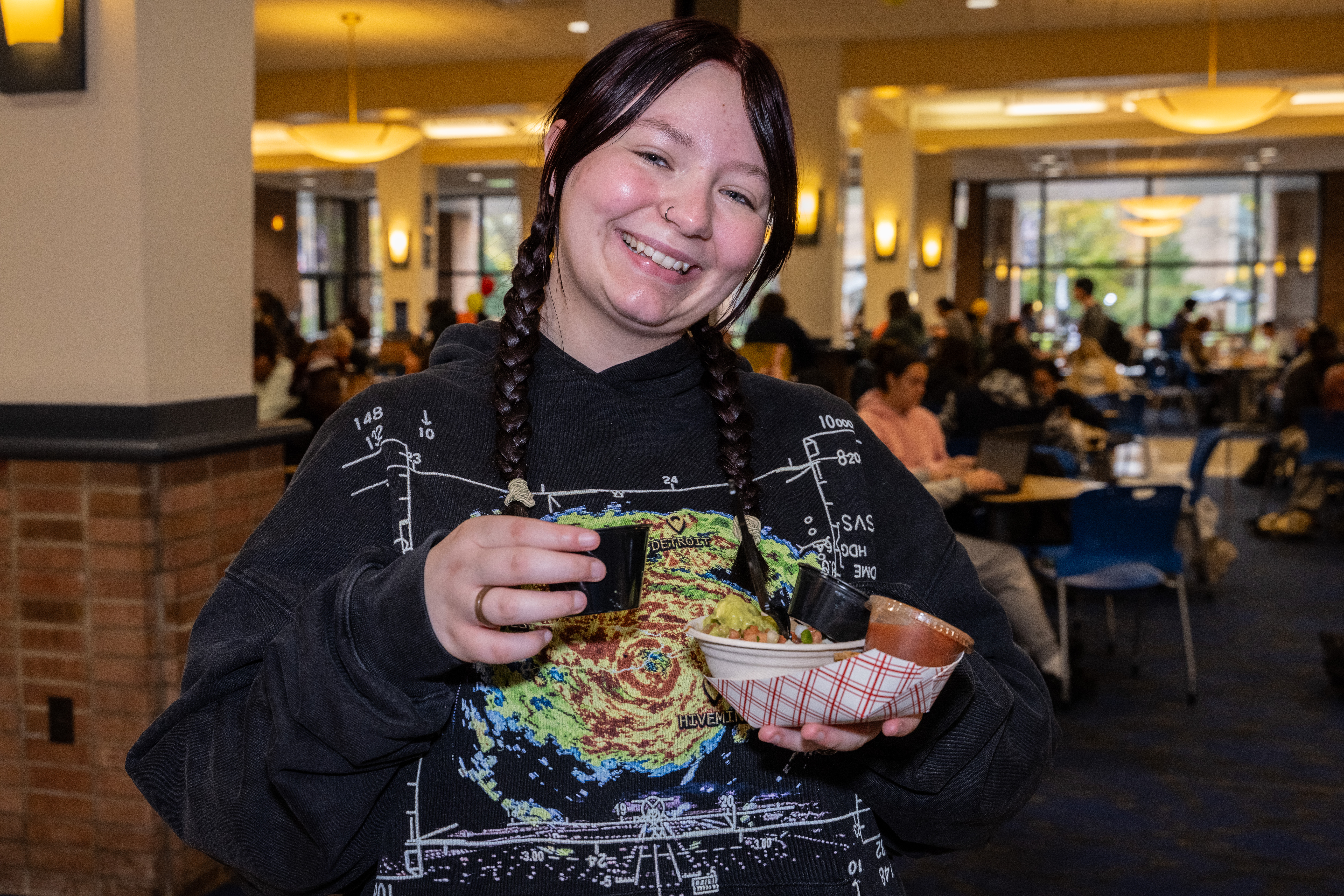 Between 11 a.m. and 1 p.m., students gathered at the Hub to enjoy free samples, giveaways, lively music and special one-day offers at Homeslice, Recharge, Hippie Chick’n and the newest location, Golden Habanero.