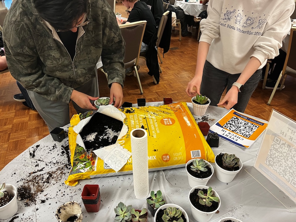 Wednesday concluded with Grow with Education Abroad: Succulent Planting, where students got the chance to plant succulents and learn about the study abroad program in the Kent Student Center. Students were provided with paints and a small pot to decorate; they were able to plant their own succulent and take it home with them.