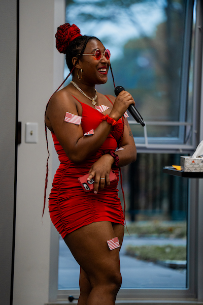 Director of the Women’s Center, Cassandra Pegg-Kirby, approached the microphone dressed as Offred from “The Handmaid’s Tale” by Margaret Atwood. Before Pegg-Kirby began reading, she reflected on the novel and her perspective on banned books.